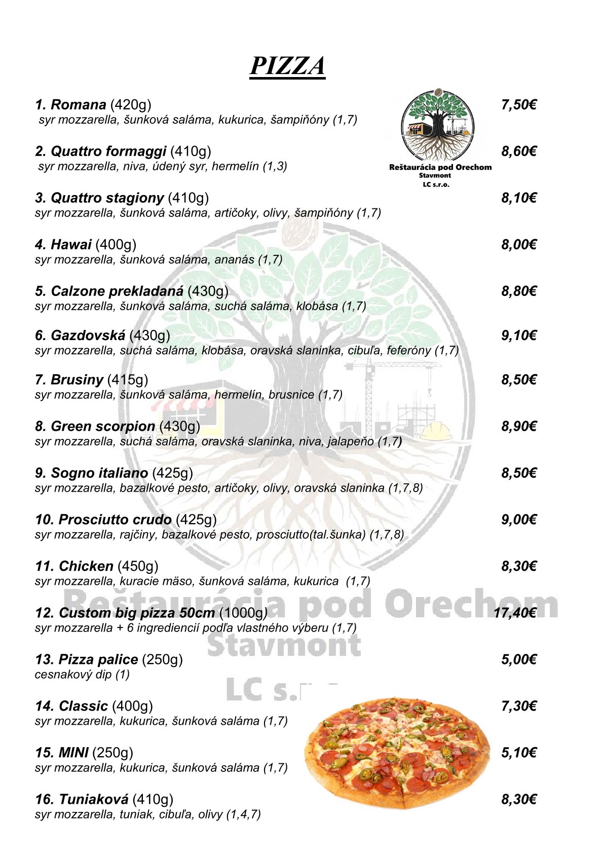 Čas dovozu PIZZE sa môže predĺžiť podľa vyťaženia kuchyne aj na 1 hodinu!!!