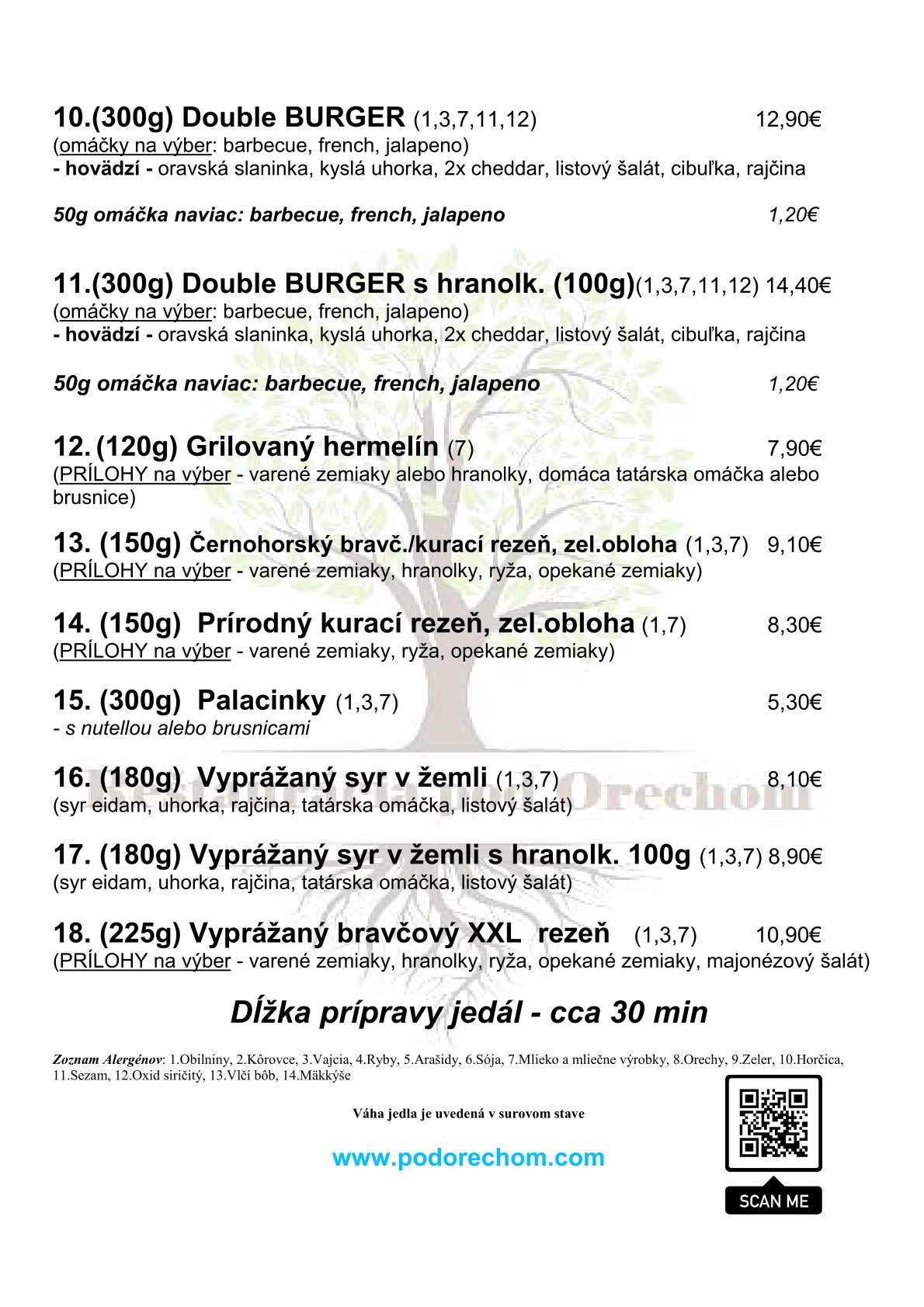 ŠTVRTOK v ponuke od 14.00h / ROZVOZ 10.00h - 13.00h, a od 15.00h - 20.30h