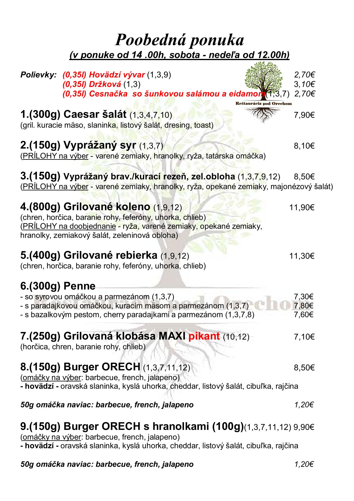 SOBOTA - v ponuke od 12.00h / ROZVOZ od 15.00h - 21.30h