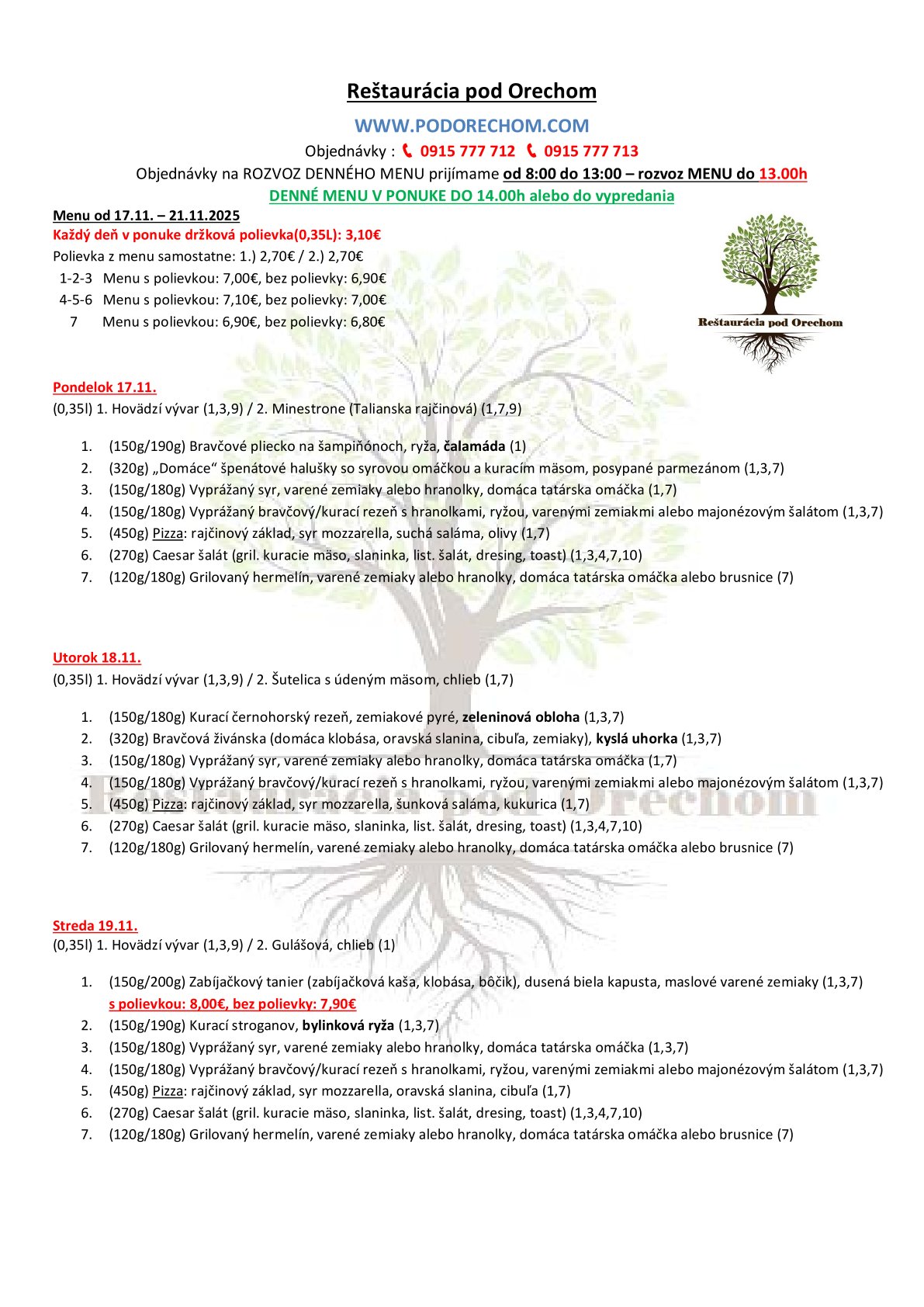ROZVOZ TÝŽDENNÉHO MENU: objednávky: 0915 777 712 alebo 0915 777 713
