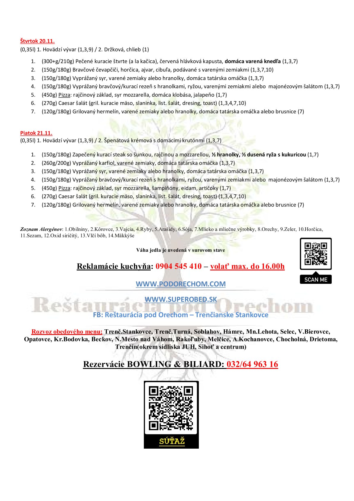 Čas dovozu MENU sa môže predĺžiť podľa vyťaženia kuchyne aj na 1 hodinu!!!
